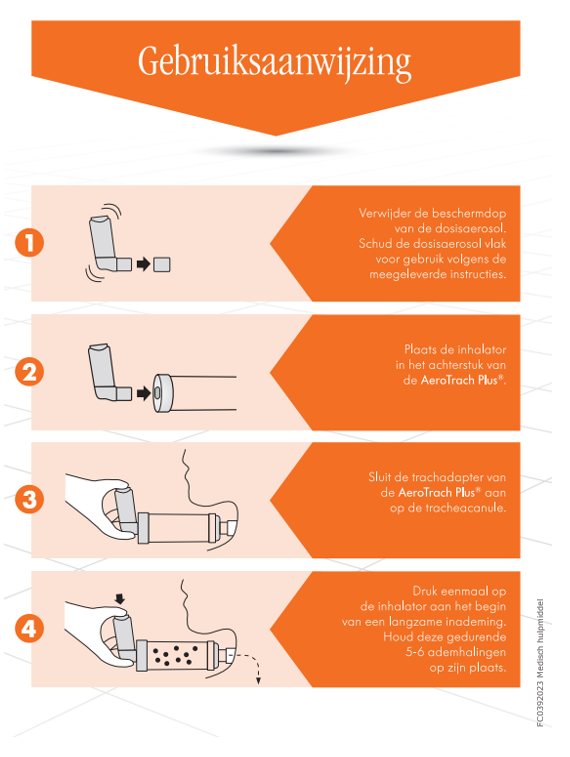 De AeroTrach Plus® voor toediening van dosisaerosol medicatie aan patiënten met een tracheostoma.